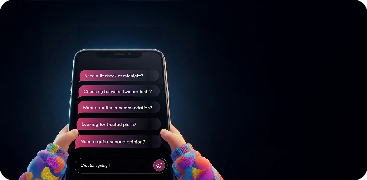 Soriz is creator-led. You receive answers shaped by a real creator’s taste and approved product catalog — blending creator voice, verified product sources, and transparent disclosures.